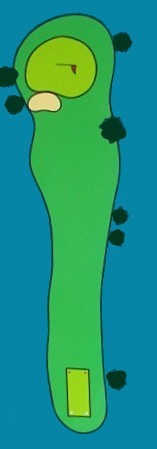Anything short will be caught by the sand trap across the front of the green, anything too long, left or right will make par tricky.