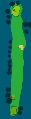Risk or reward short par 4. Sensible play is long iron off the tee short of the large mound on the left and the fairway bunker down the right. This leaves a short iron in to a narrow green. Play it safe, take your par and move on. Out of bounds: Entire left and most of the right side of the fairway.