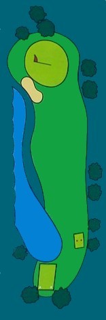 A demanding par three with water carry and a large bunker protecting the left front side of the green. Take plenty of club and play the percentage shot to the right hand side of the green.